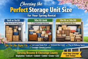 Spring is the busiest season for storage rentals in Broome County and Chenango County, New York. Families are moving, homeowners are renovating, and businesses are reorganizing inventory.