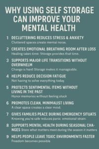 If you’re feeling overwhelmed, stuck, stressed, or emotionally weighed down by clutter or life transitions, self storage isn’t just a convenience—it’s a path toward mental clarity and healing.